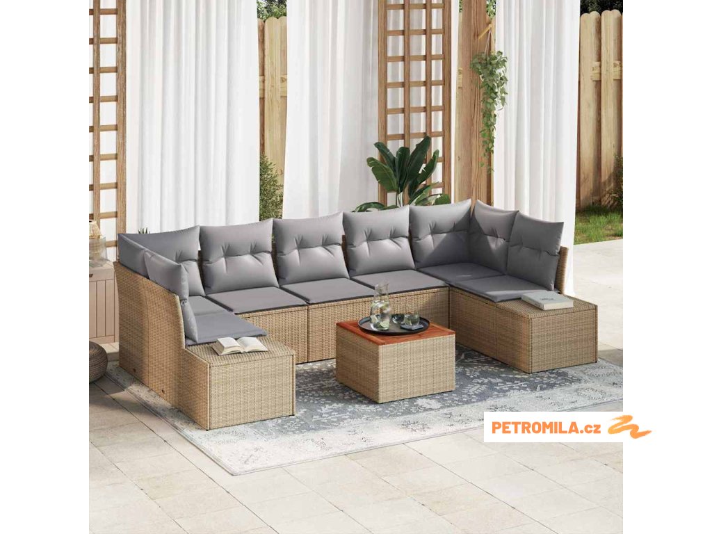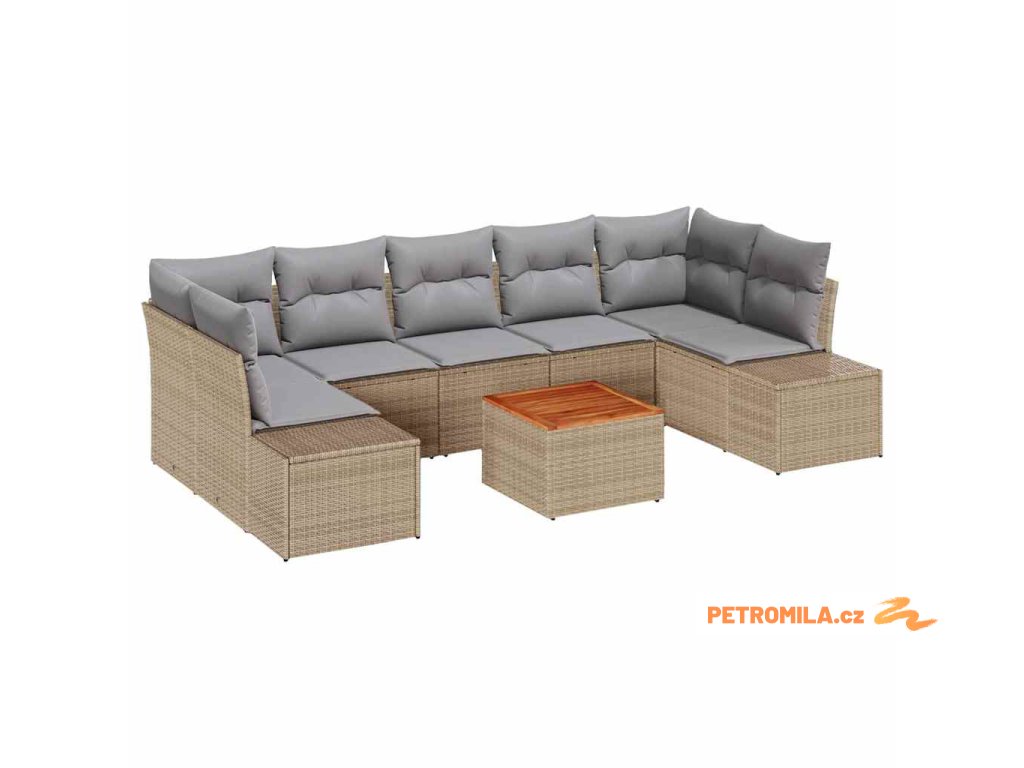 Sada zahradních pohovek s polštářem 9 pcs Béžová Poly ratan