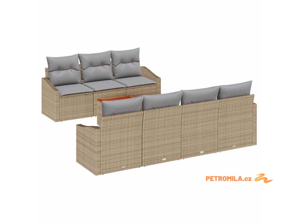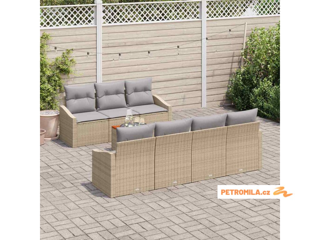 Sada zahradních pohovek s polštářem 7 pcs Béžová Poly ratan
