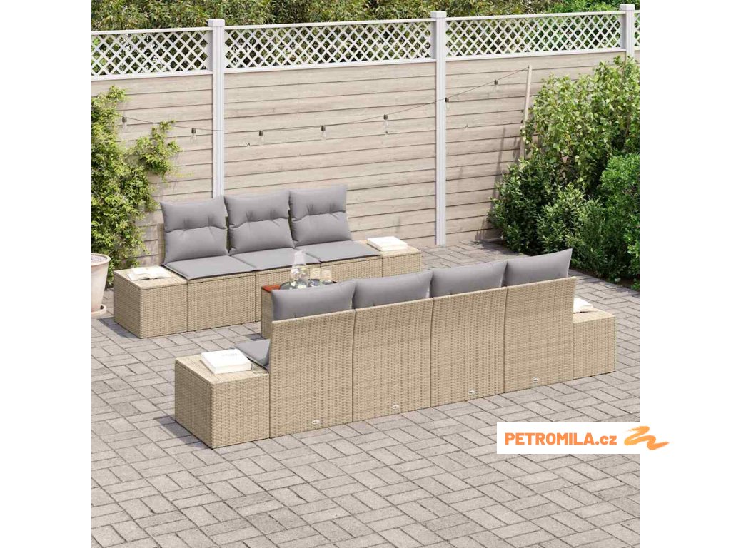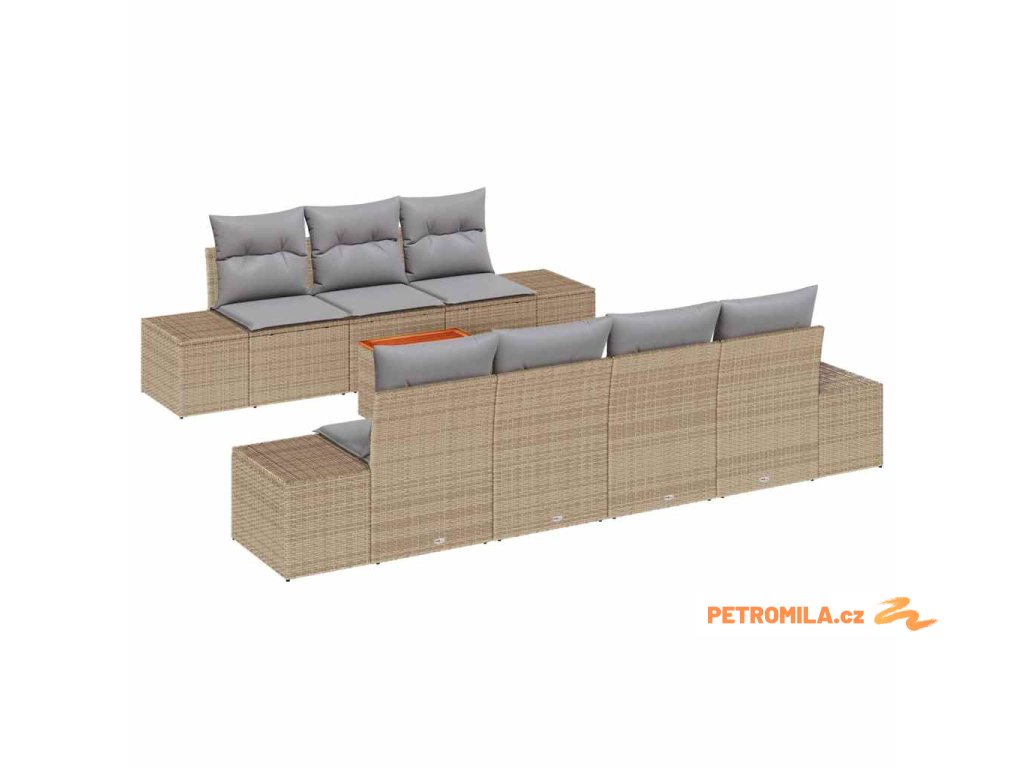 Sada zahradních pohovek s polštářem 8 pcs Béžová Poly ratan