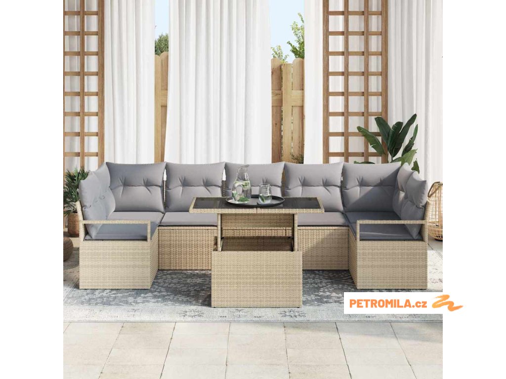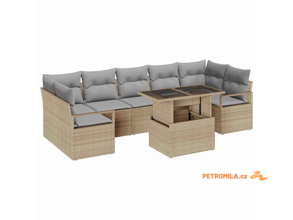 Sada zahradních pohovek 8 pcs Béžová a Světle šedá polyratan