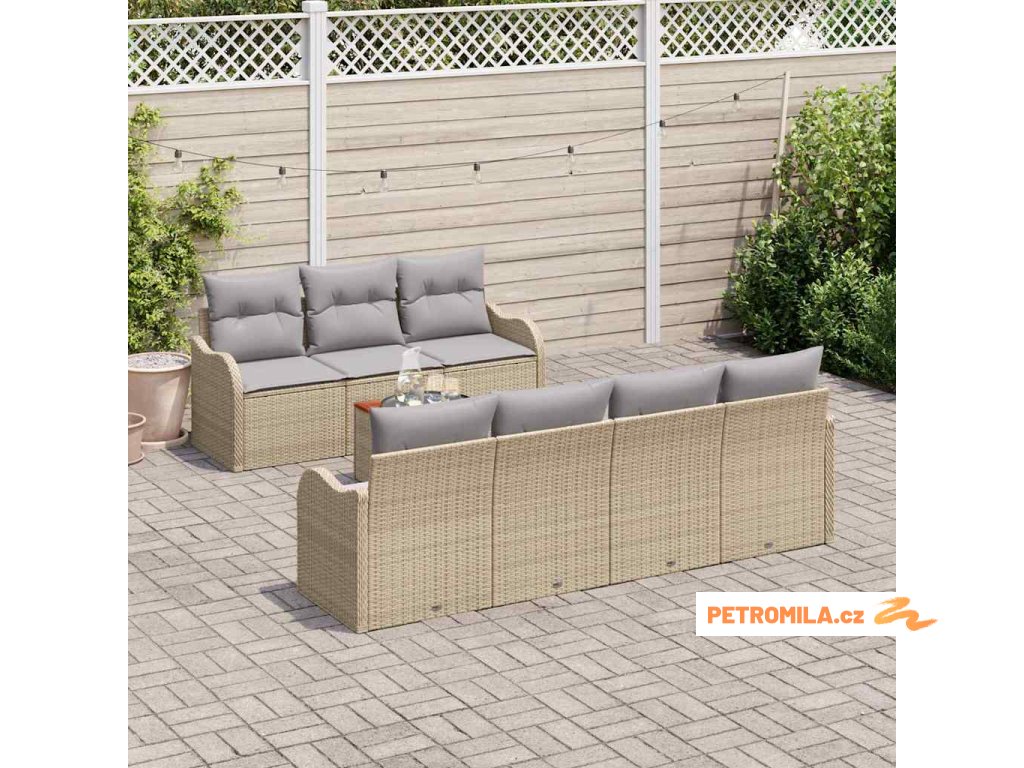 Sada zahradních pohovek s polštářem 8 pcs Béžová Poly ratan