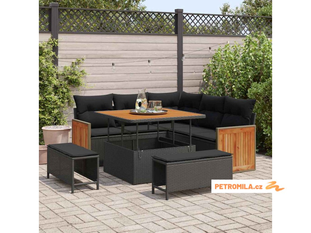 Sada zahradních pohovek 8 pcs Černá 100 x 100 x 71 cm