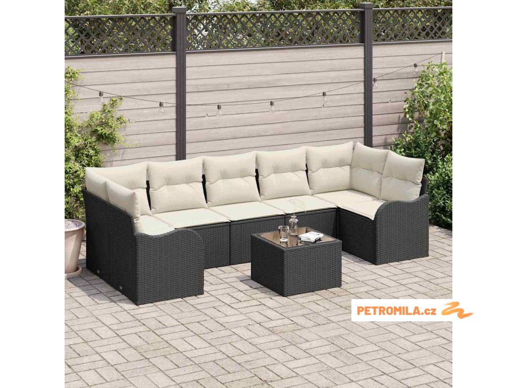 Sada zahradních pohovek 8 pcs Černá 55 x 55 x 37 cm Poly ratan