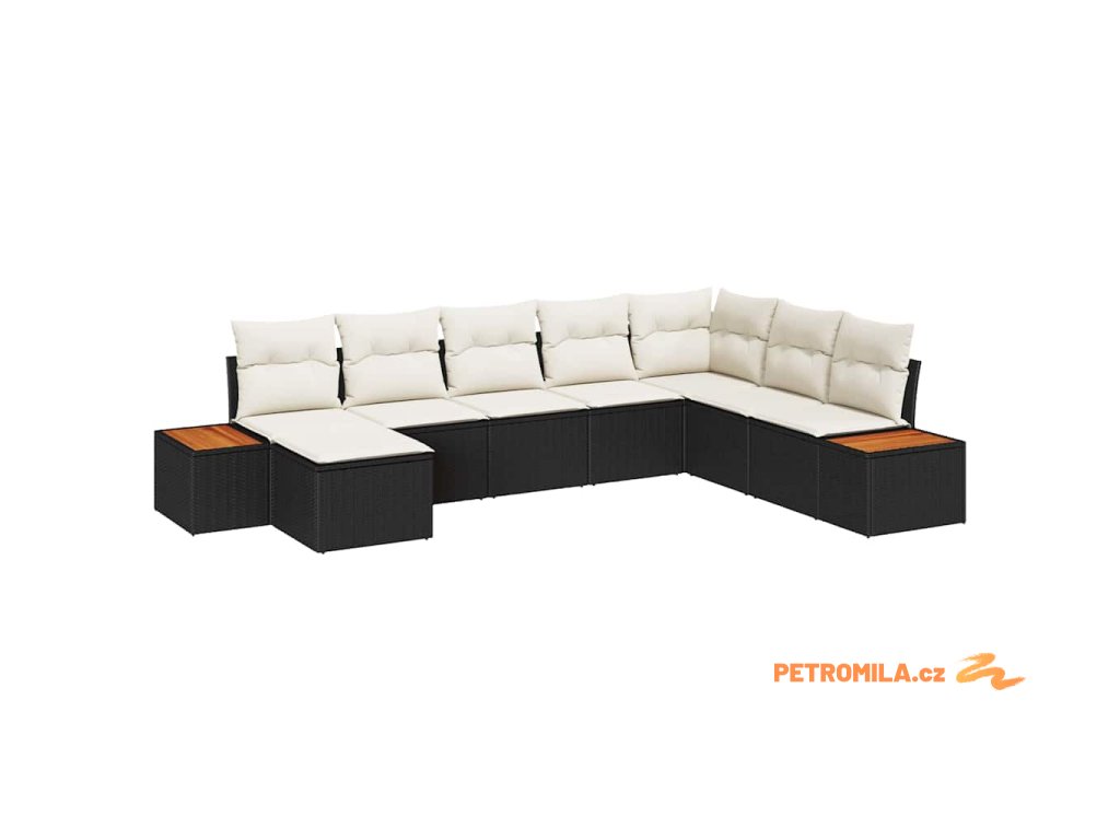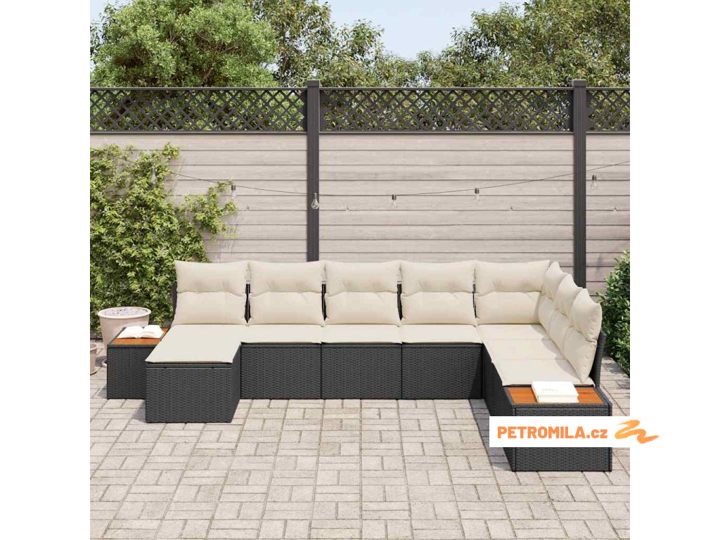 Sada zahradních pohovek 8 pcs Černá a krémová Poly Ratan