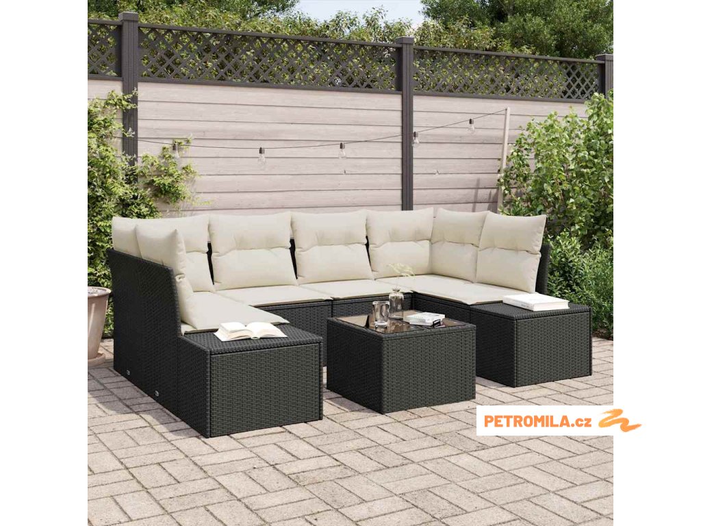Sada zahradních pohovek 8 pcs Černá a krémová polyratan