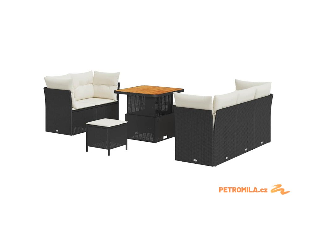 Sada zahradních pohovek 8 pcs Černá a krémová polyratan