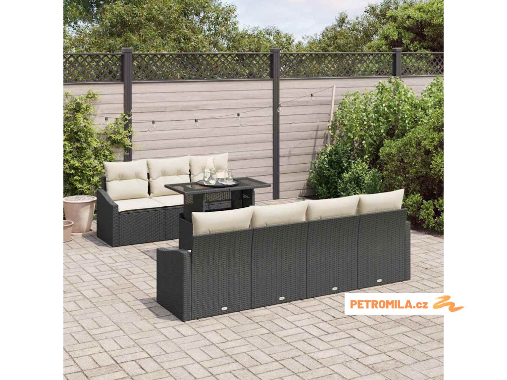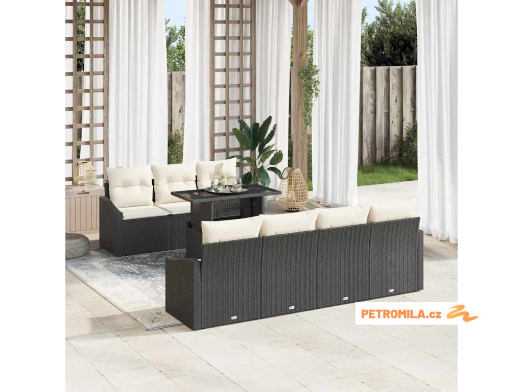Sada zahradních pohovek 8 pcs Černá a krémová polyratan