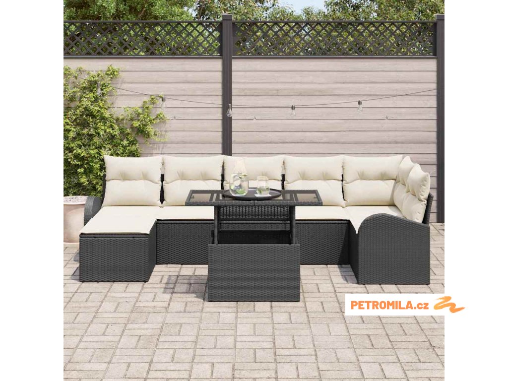 Sada zahradních pohovek 8 pcs Černá a krémová polyratan
