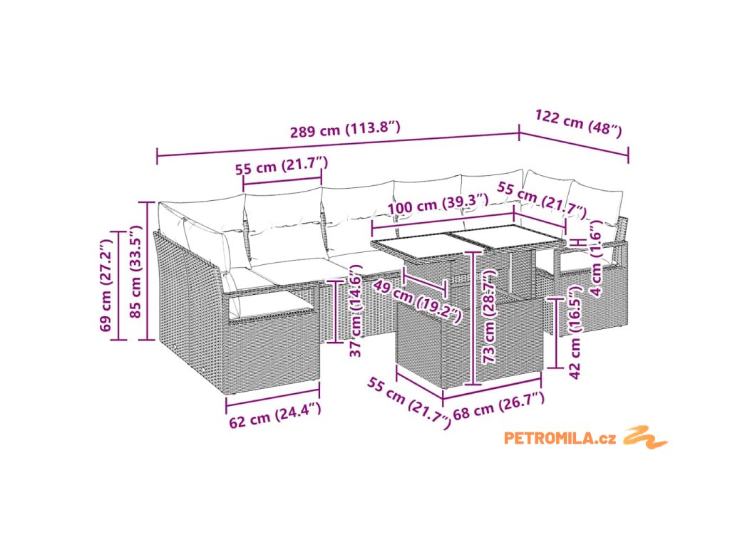 - Zahrnuté komponenty: Set obsahuje rohové a středové sedačky a odpovídající stůl. Můžete je poskládat různými způsoby podle potřeby. Integrovaný úložný prostor v opěrkách poskytuje dodatečný prostor, což dělá tento set praktickým a stylovým.
