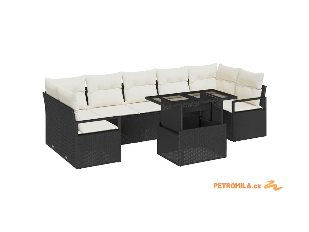 Sada zahradních pohovek 8 pcs Černá a krémová polyratan