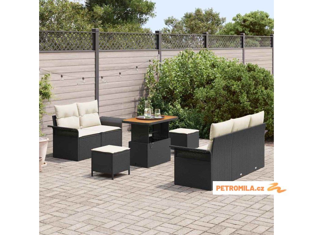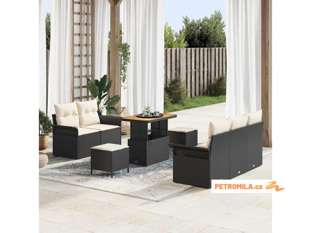 Sada zahradních pohovek 9 pcs Černá polyratan
