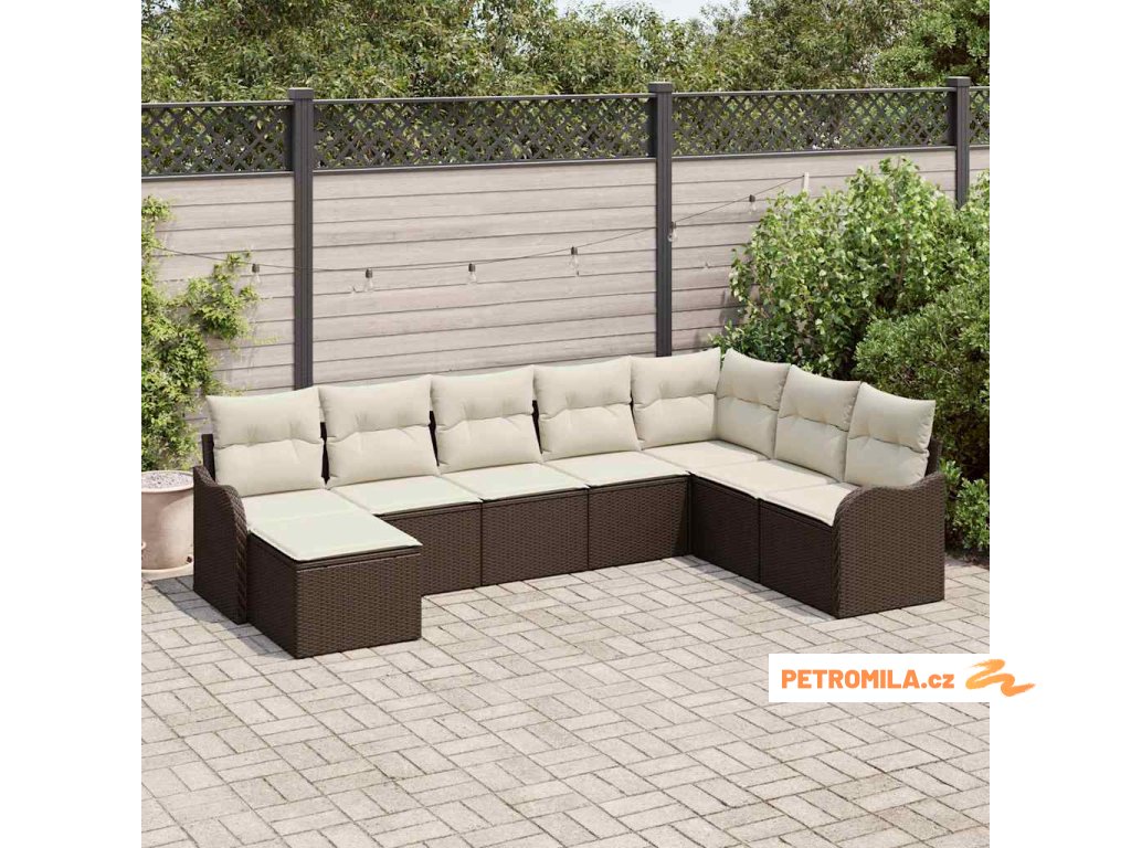 Sada zahradních pohovek 8 pcs Hnědá a bílá Poly ratan