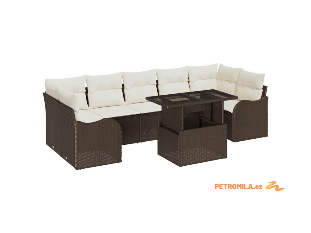 Sada zahradních pohovek 8 pcs Hnědá a krémová polyratan