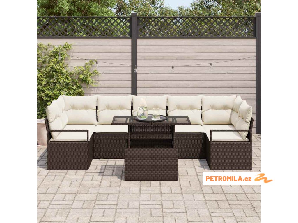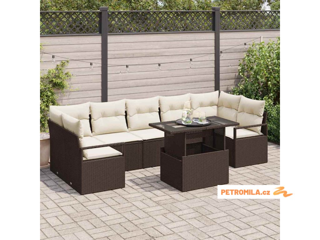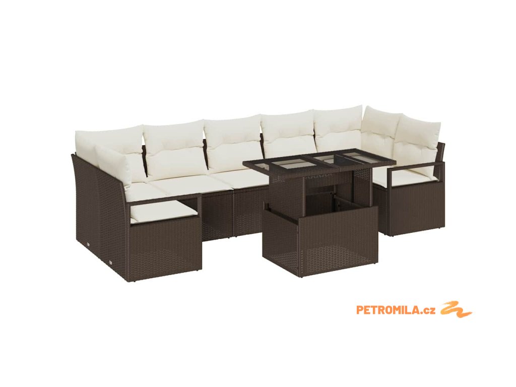 Sada zahradních pohovek 8 pcs Hnědá a krémová polyratan