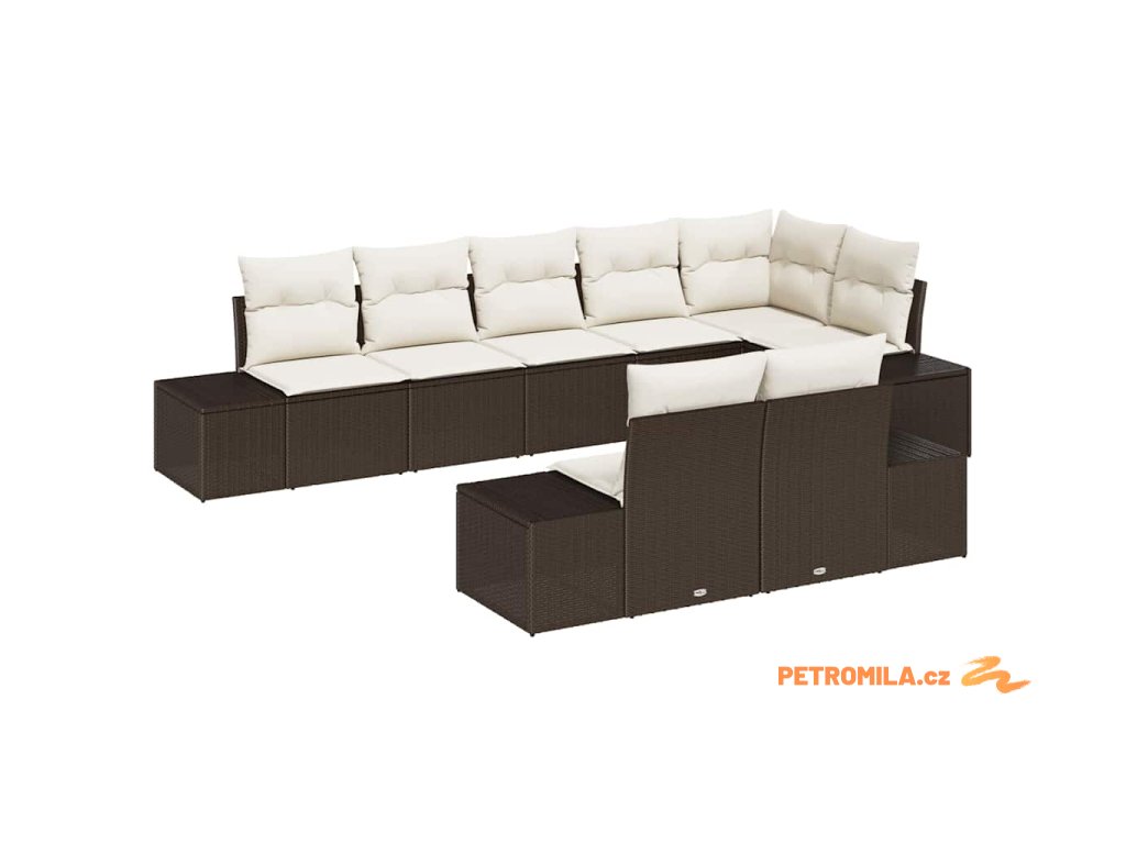 Sada zahradních pohovek 8 pcs Hnědá a krémová polyratan