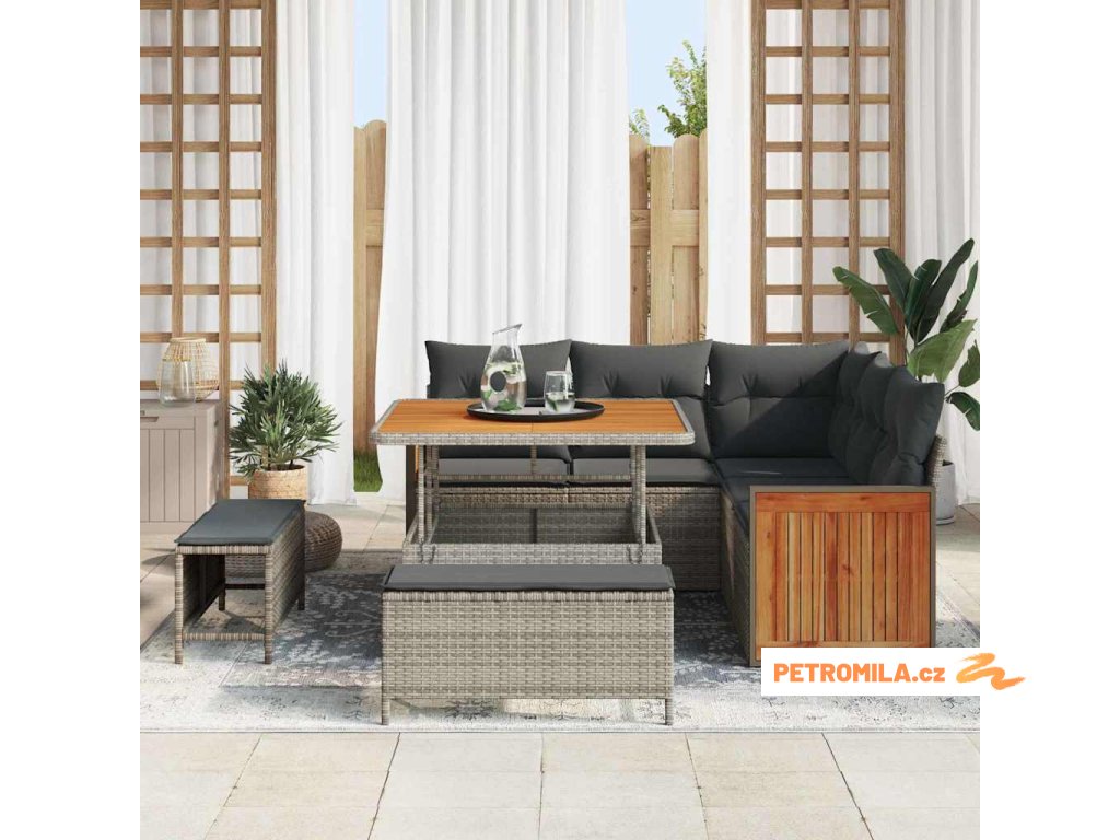 - Design Šetřící Prostor: Tato rohová sada gaučů je perfektní do zahrad a teras s omezeným prostorem. Nabízí modulární flexibilitu, kterou si můžeš přizpůsobit podle sebe. Usporiádání podporuje socializaci, takže je fajn na bavení hostů nebo jen na užívání si klidu.
