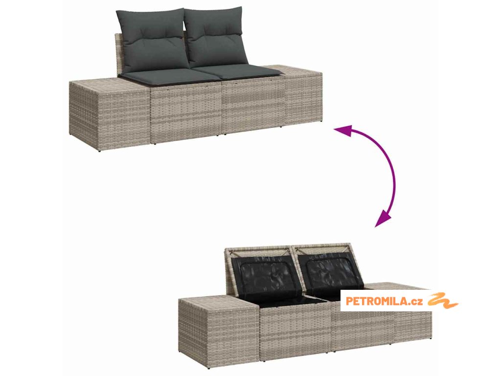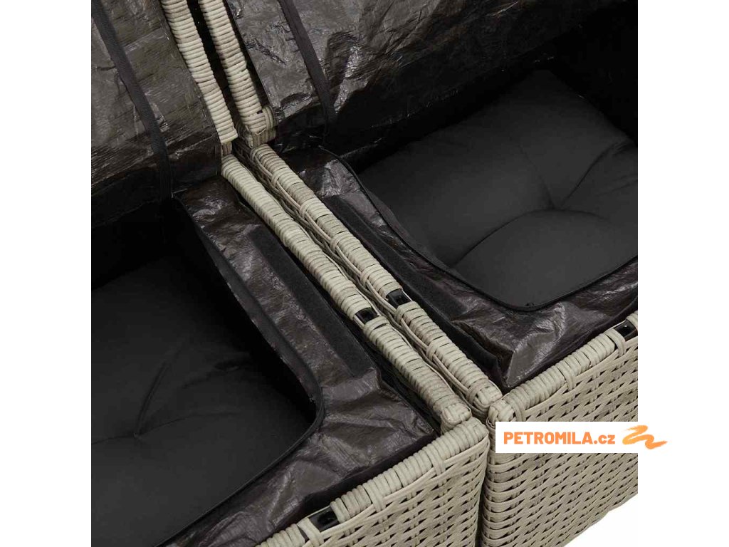 - Vestavěné úložiště: Lavice mají úložné prostory na polštáře nebo venkovní vybavení, takže všechno máte po ruce, a prostor zůstává uklizený a přehledný.