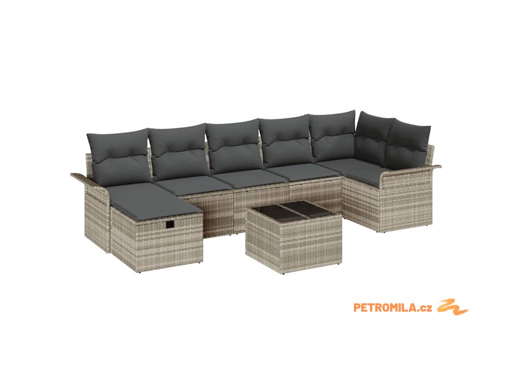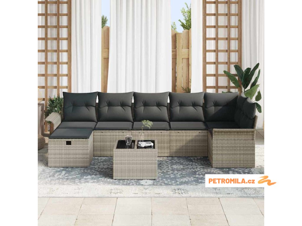 Sada zahradních pohovek s polštářem 8 pcs Šedá Poly ratan