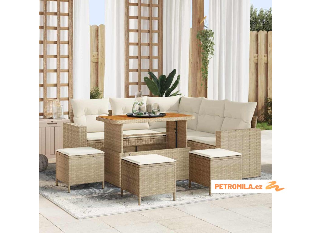 Sada zahradních pohovek 9 pcs béžová a krémová 110 x 55 x 71 cm