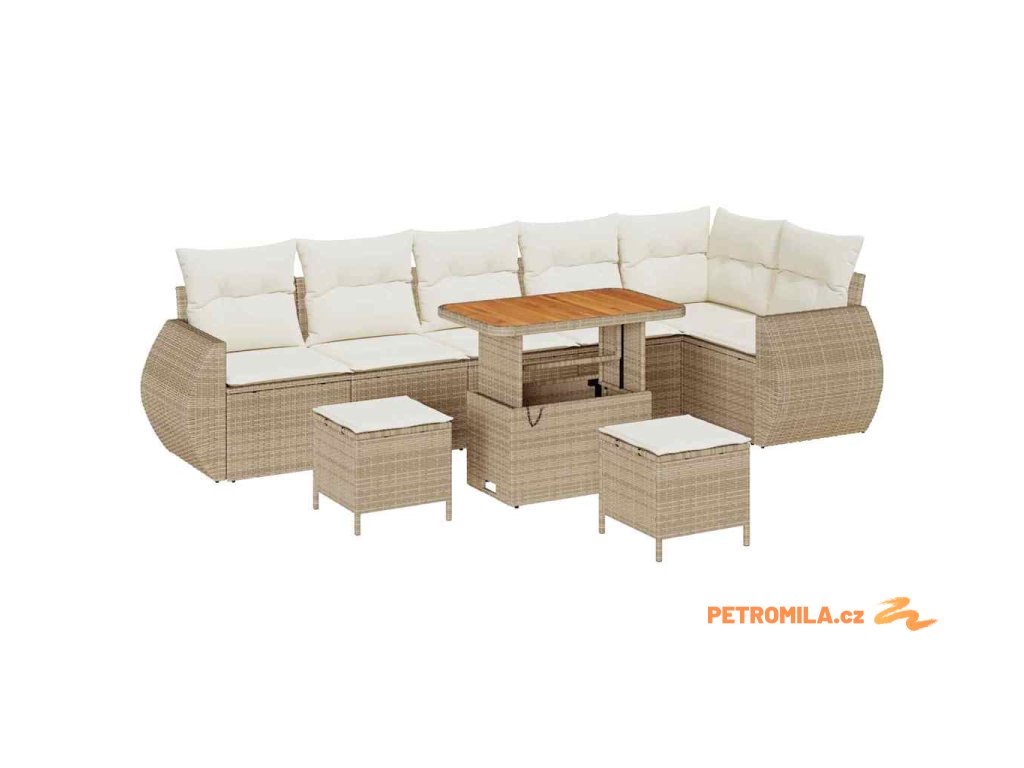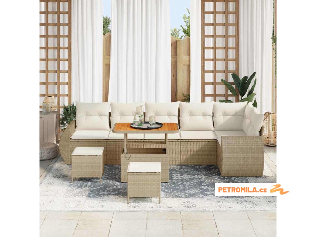 Sada zahradních pohovek 9 pcs Béžová a krémová Poly Ratan