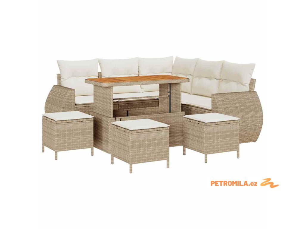 Sada zahradních pohovek 9 pcs Béžová a krémová polyratan