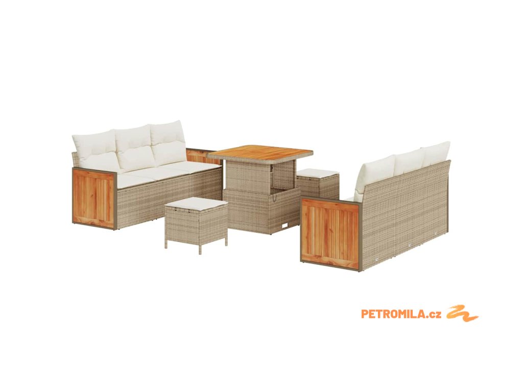 Sada zahradních pohovek 9 pcs Béžová a krémová polyratan