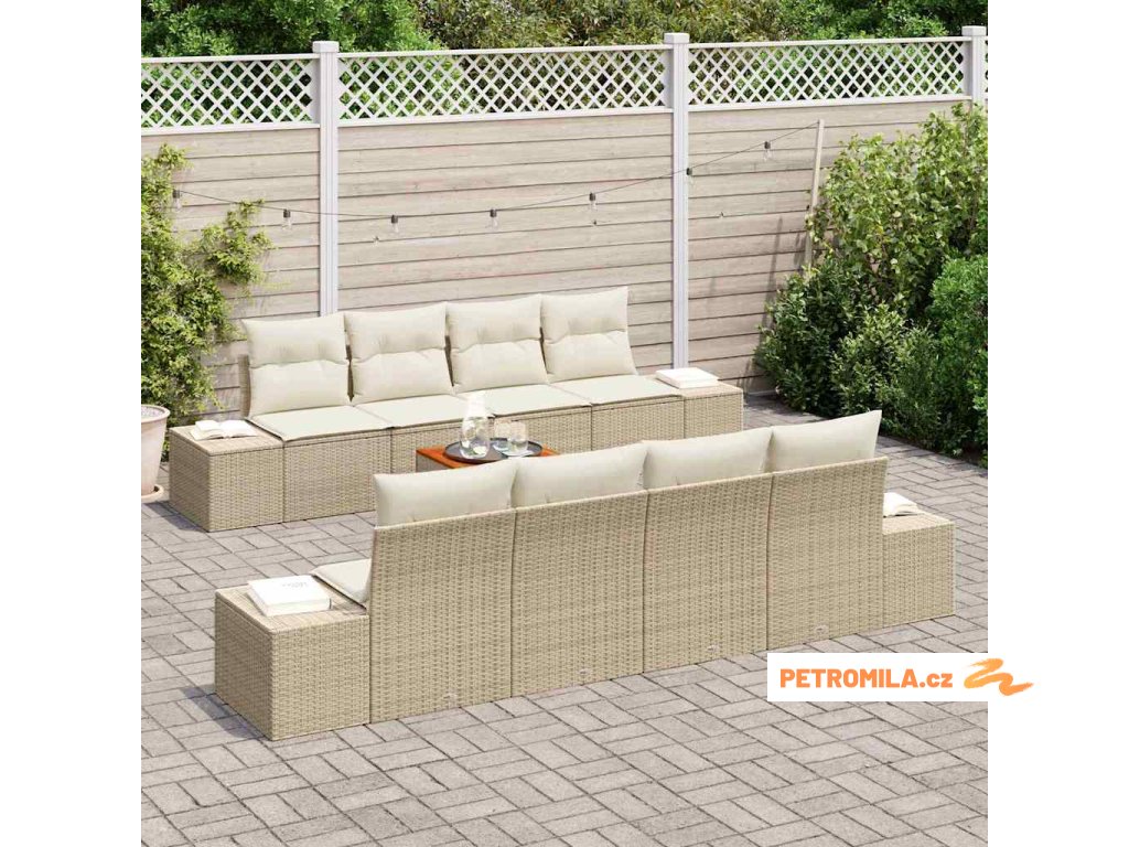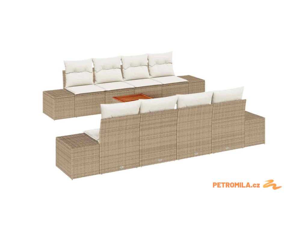Sada zahradních pohovek 9 pcs Béžová a krémová polyratan