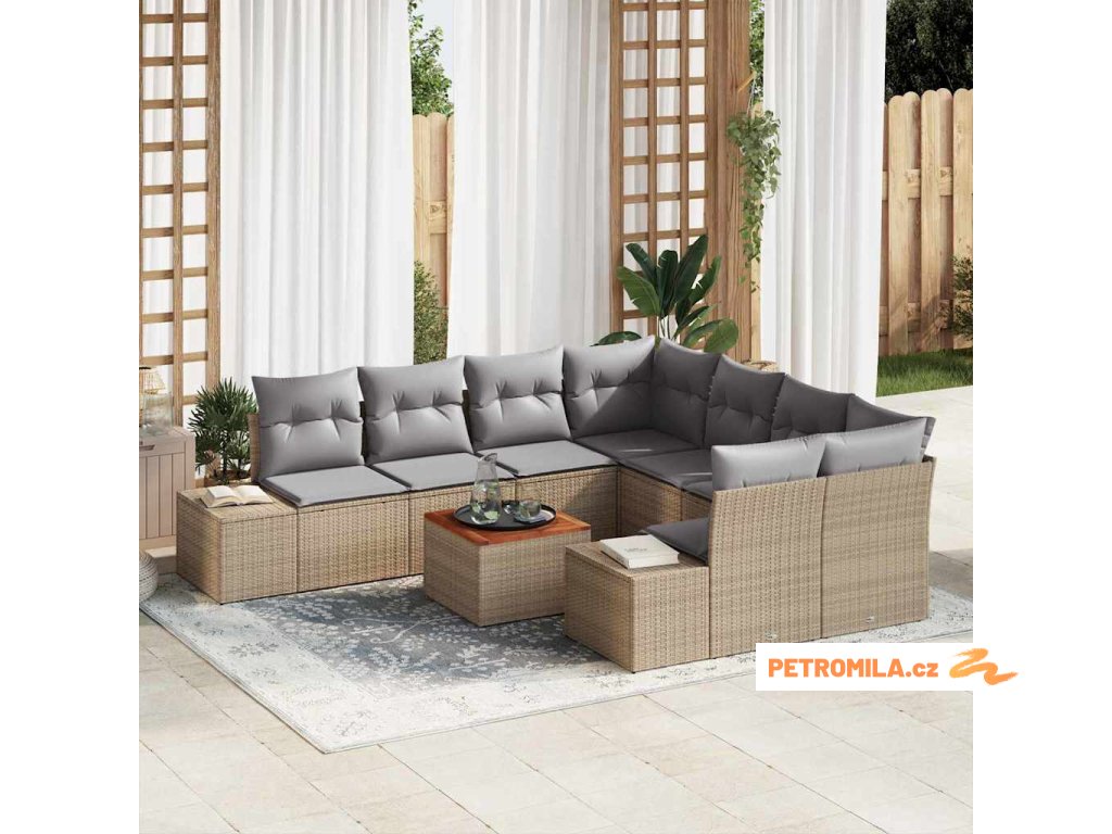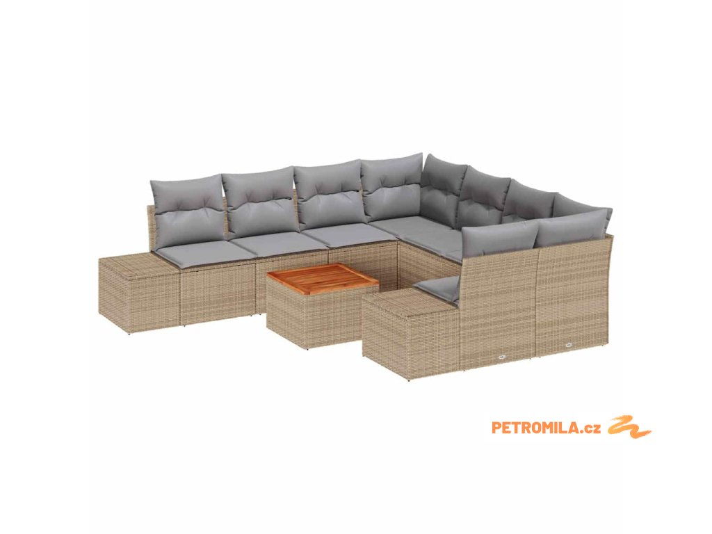 Sada zahradních pohovek 9 pcs Béžová a Světle šedá polyratan