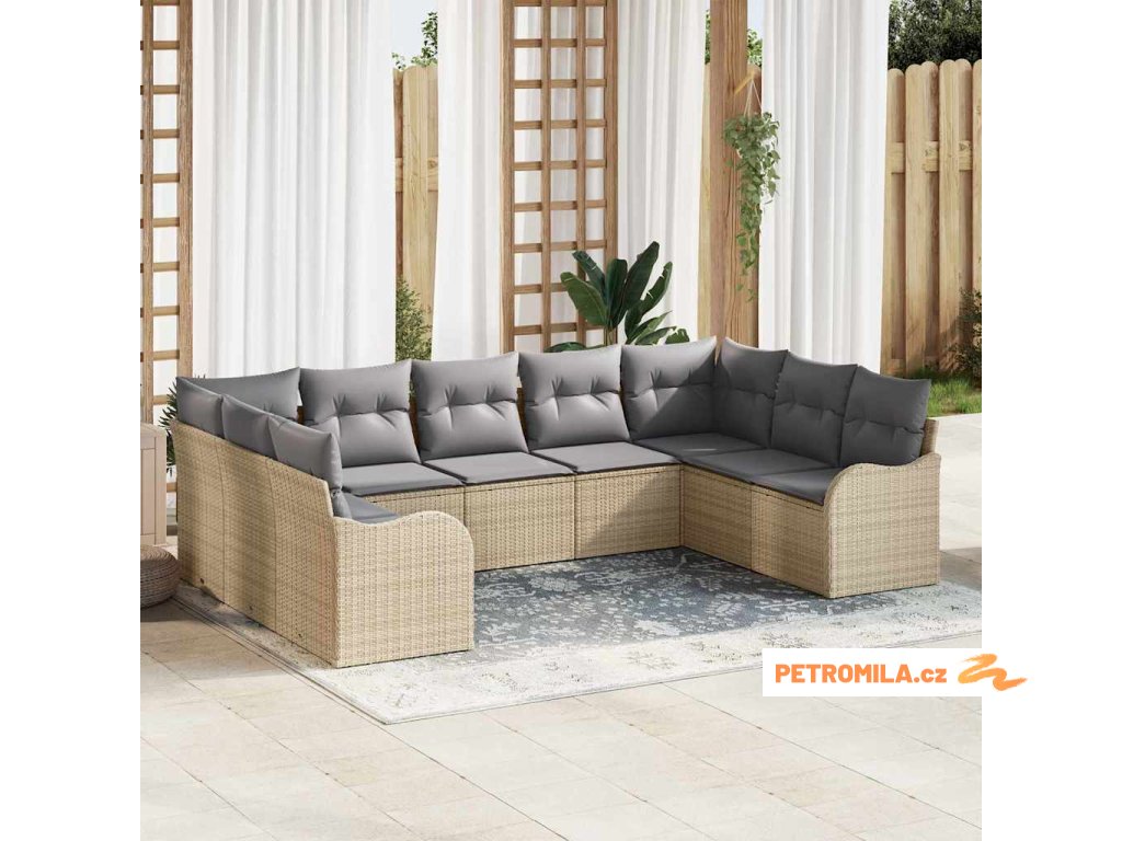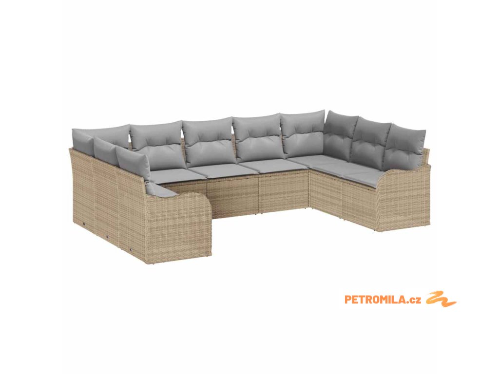 Sada zahradních pohovek s polštářem 9 pcs Béžová Poly ratan