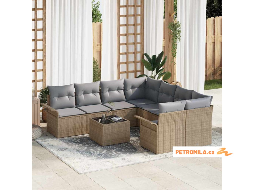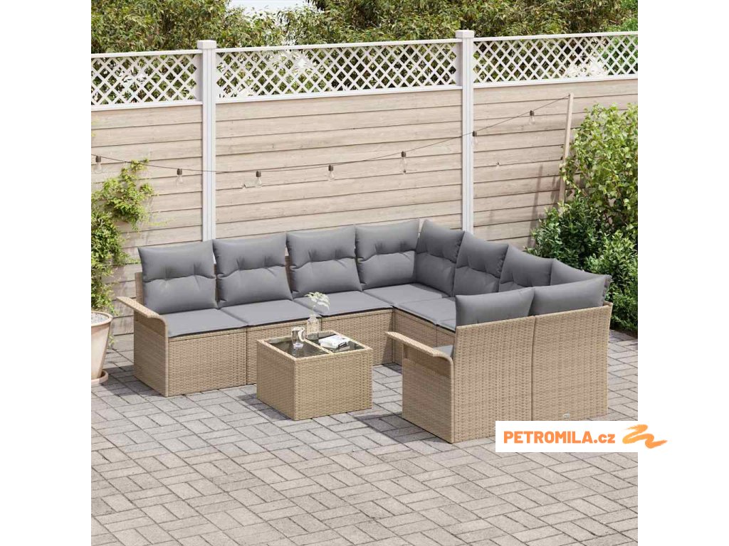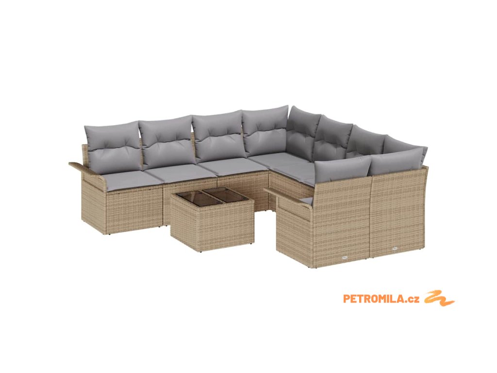 Sada zahradních pohovek s polštářem 9 pcs Béžová Poly ratan