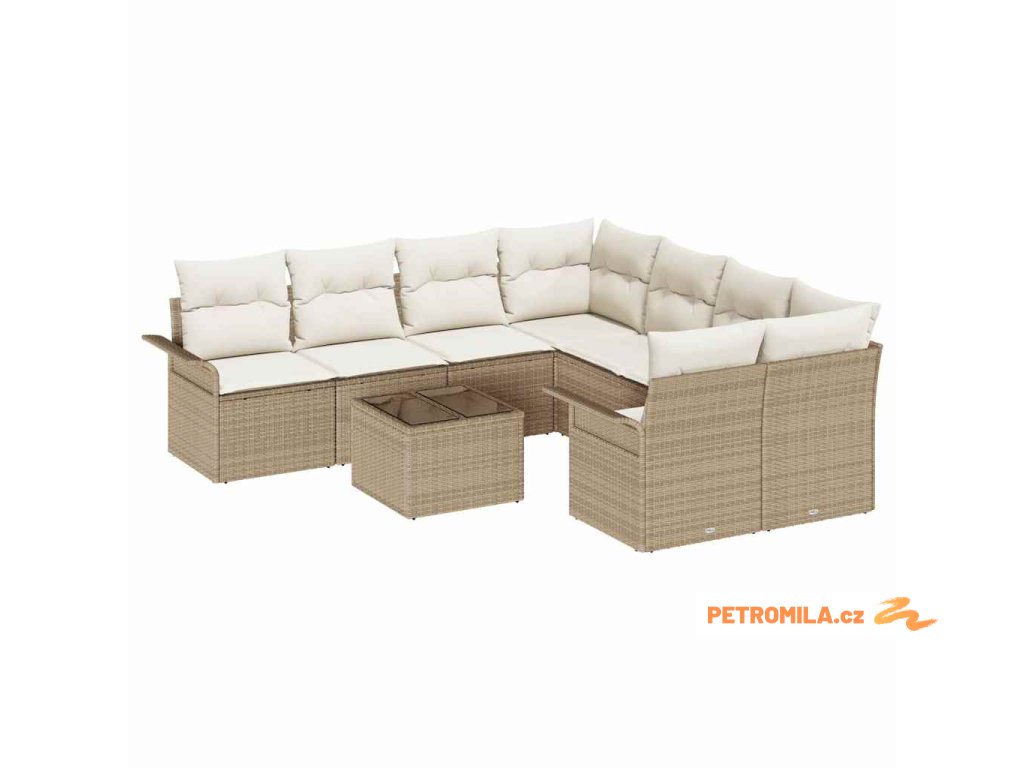 Sada zahradních pohovek s polštářem 9 pcs Béžová Poly ratan