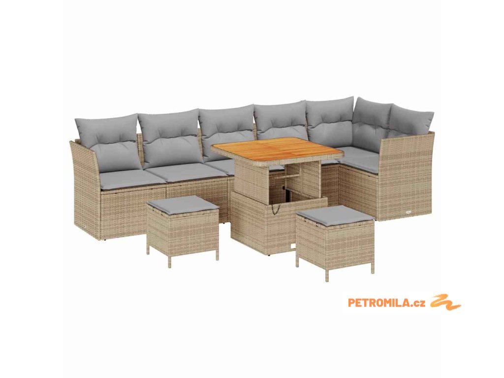 Sada zahradních pohovek s polštářem 8 pcs Béžová Poly ratan