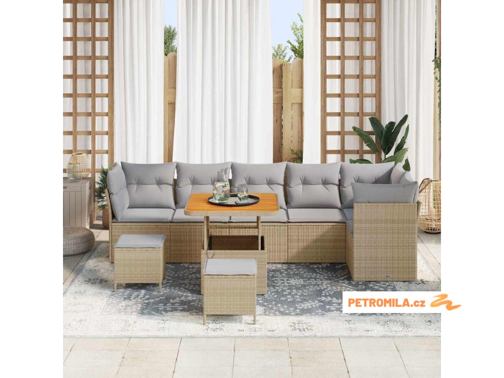 Sada zahradních pohovek s polštářem 9 pcs Béžová Poly ratan