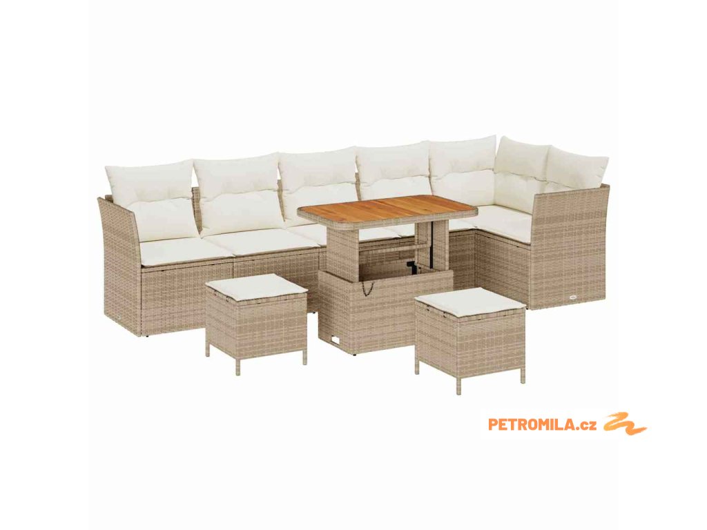 Sada zahradních pohovek s polštářem 8 pcs Béžová Poly ratan