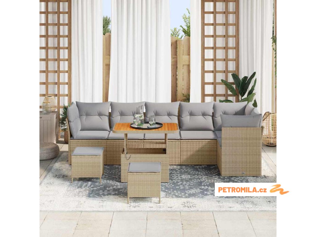 Sada zahradních pohovek 9 pcs Béžová polyratan