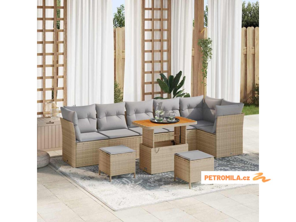 Sada zahradních pohovek s polštářem 8 pcs Béžová Poly ratan
