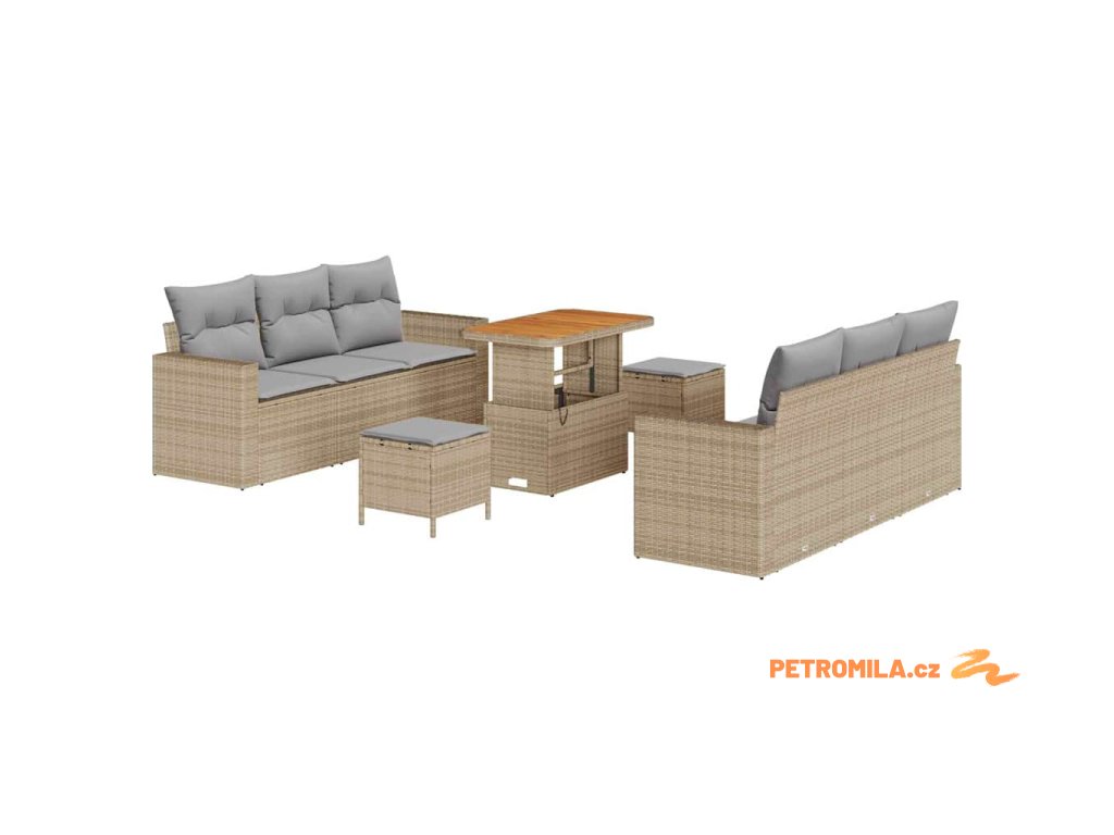 Sada zahradních pohovek s polštářem 9 pcs Béžová Poly ratan