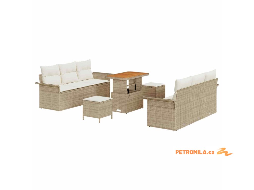 Sada zahradních pohovek 9 pcs Béžová polyratan