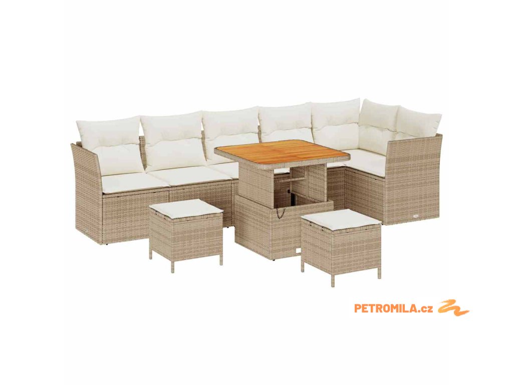 Sada zahradních pohovek s polštářem 8 pcs Béžová Poly ratan
