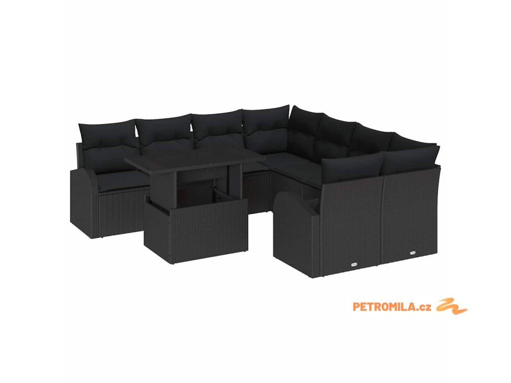 Sada zahradních pohovek 9 pcs Černá 100 x 55 x 73 cm Poly ratan