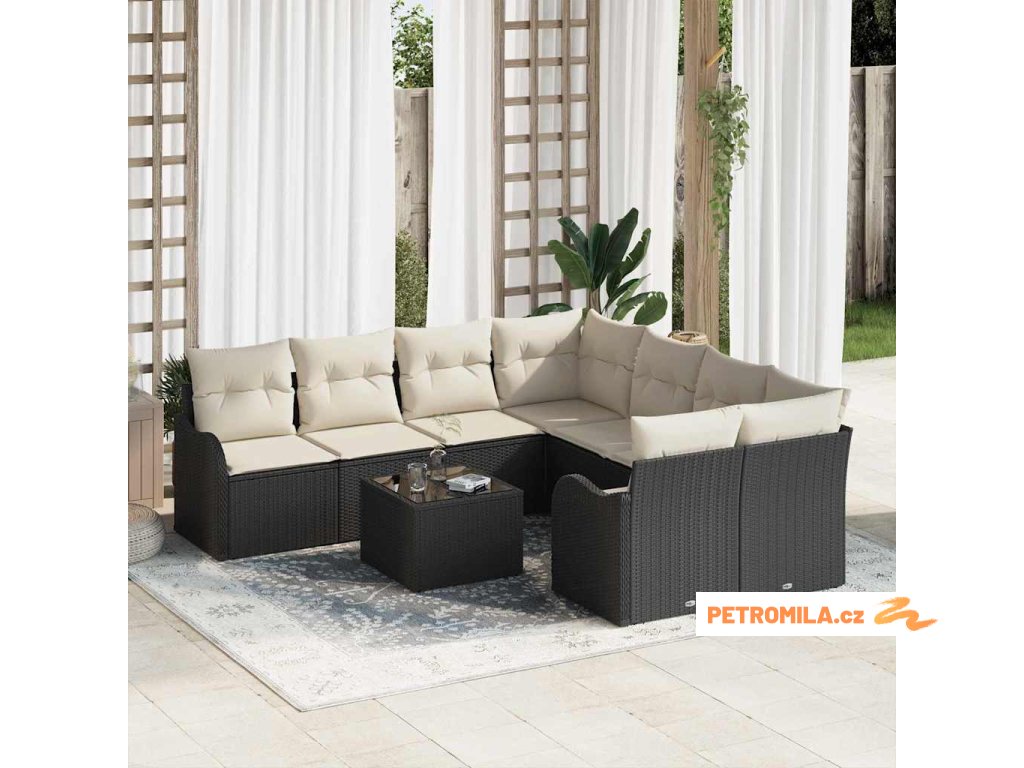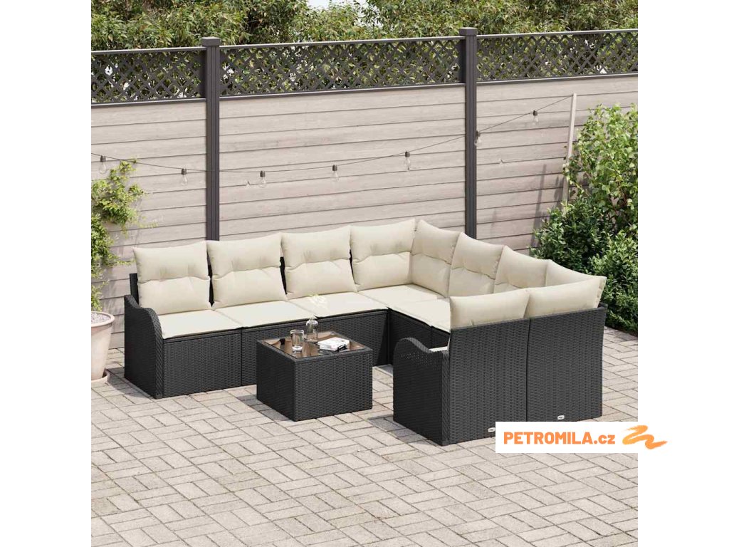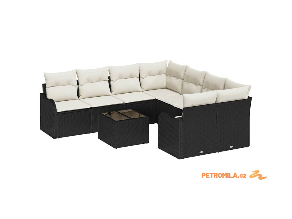 Sada zahradních pohovek 9 pcs Černá 55 x 55 x 37 cm Poly ratan