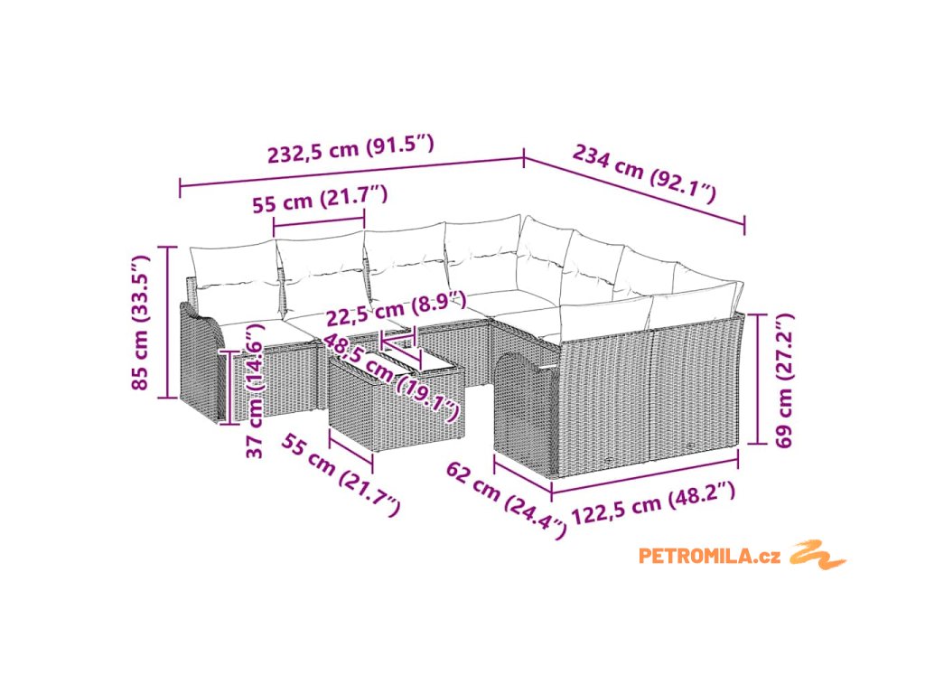 - Celkové rozměry: 55 x 55 x 37 cm (D x Š x V)