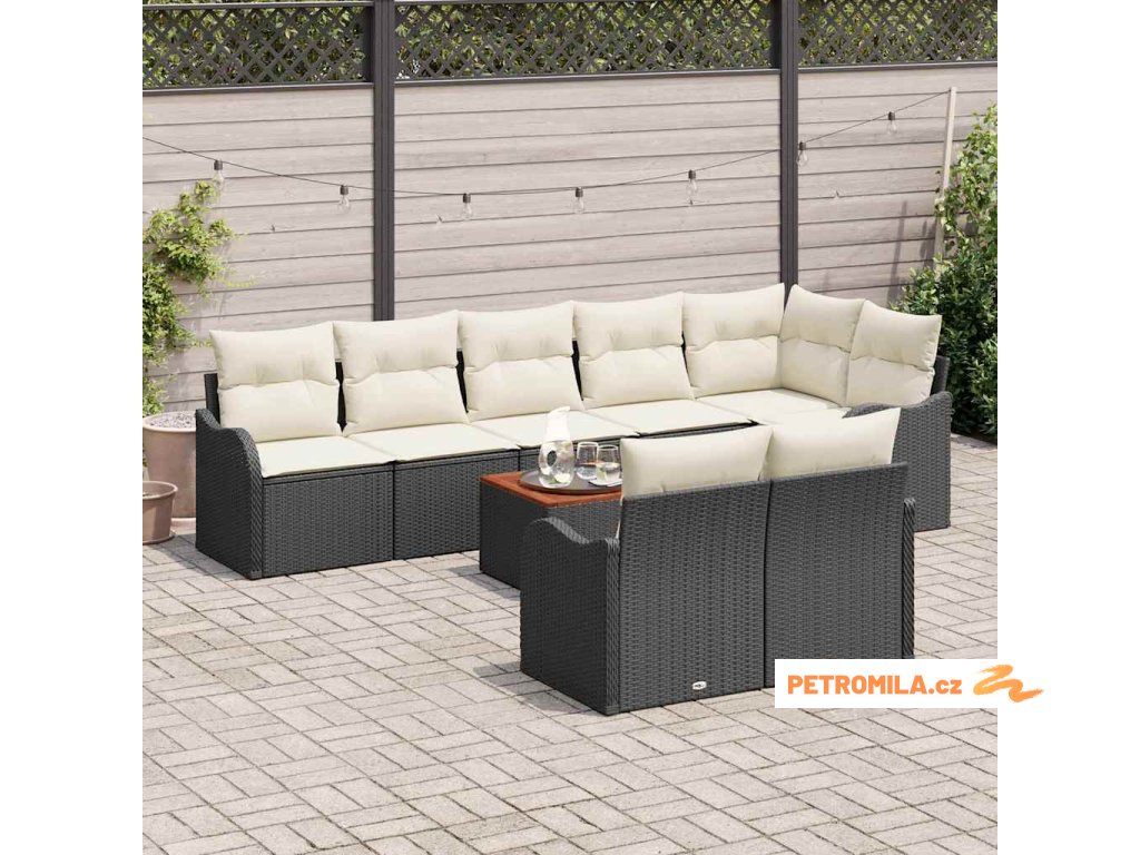 Sada zahradních pohovek 9 pcs Černá a bílá