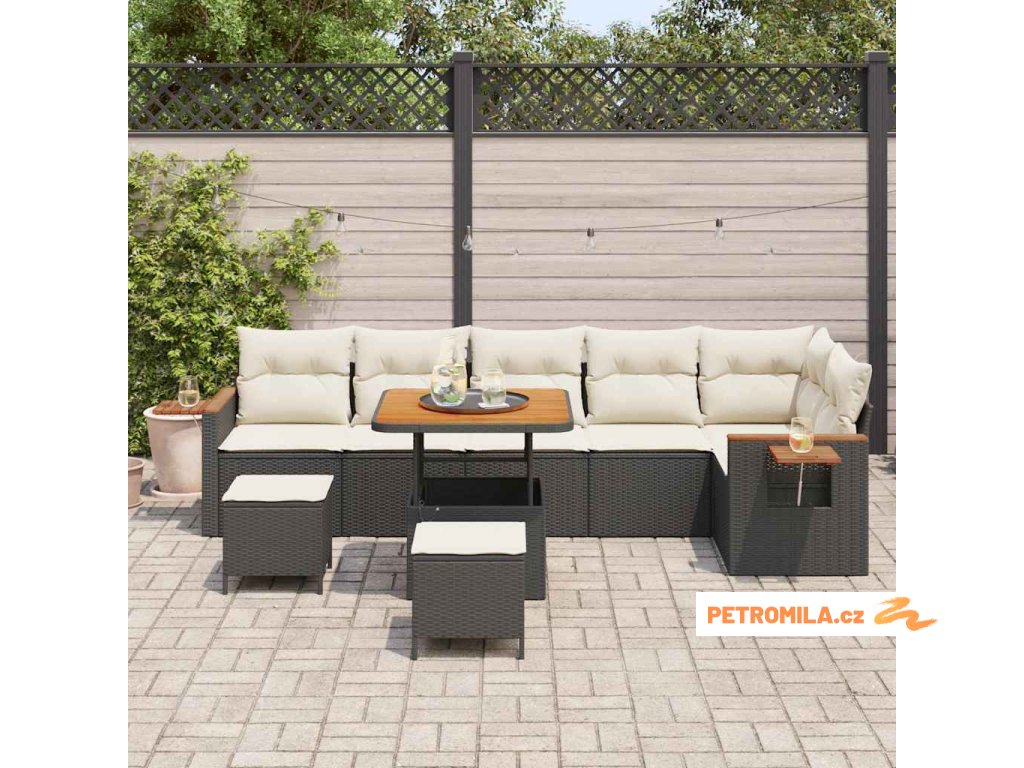 Sada zahradních pohovek 9 pcs Černá a krémová 80 x 80 x 71 cm