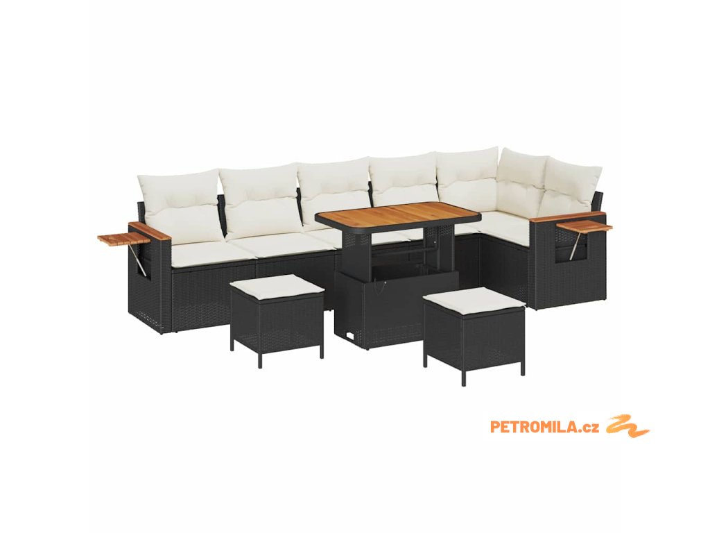 Sada zahradních pohovek 9 pcs Černá a krémová 90 x 55 x 71 cm