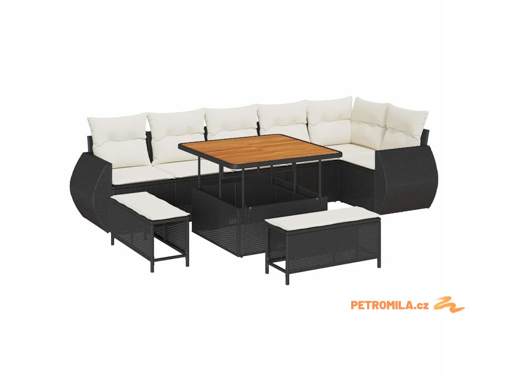Sada zahradních pohovek 9 pcs Černá a krémová Poly Ratan