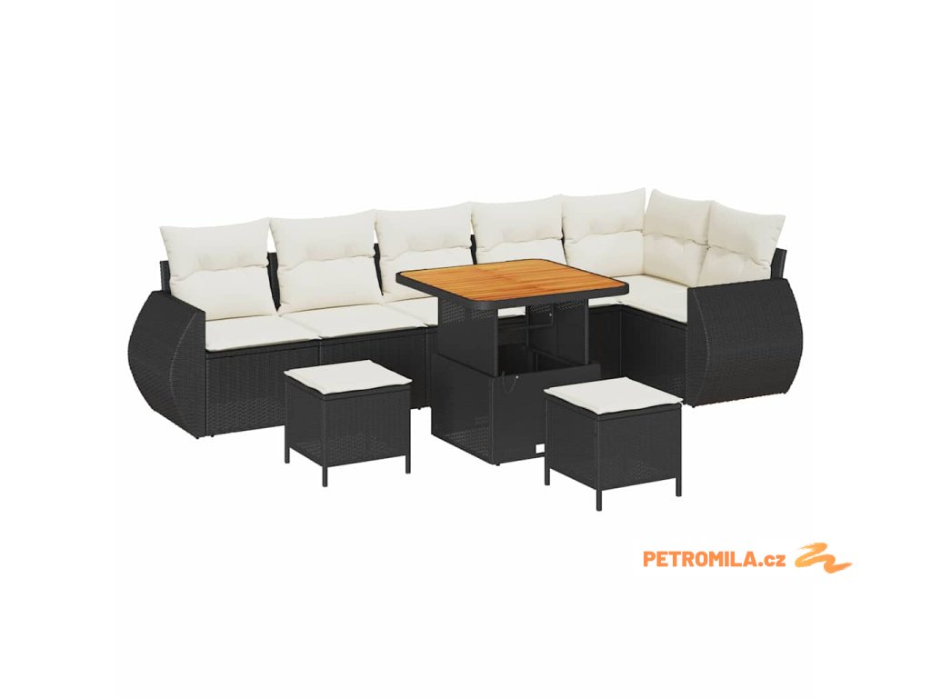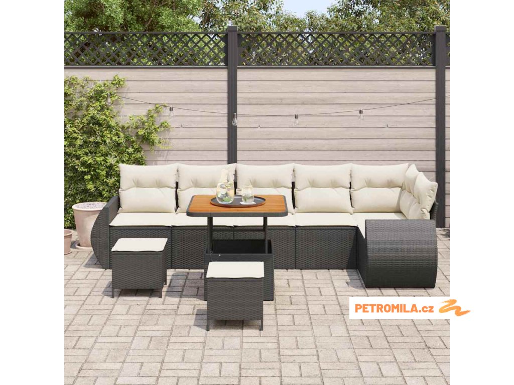 Sada zahradních pohovek 9 pcs Černá a krémová Poly Ratan