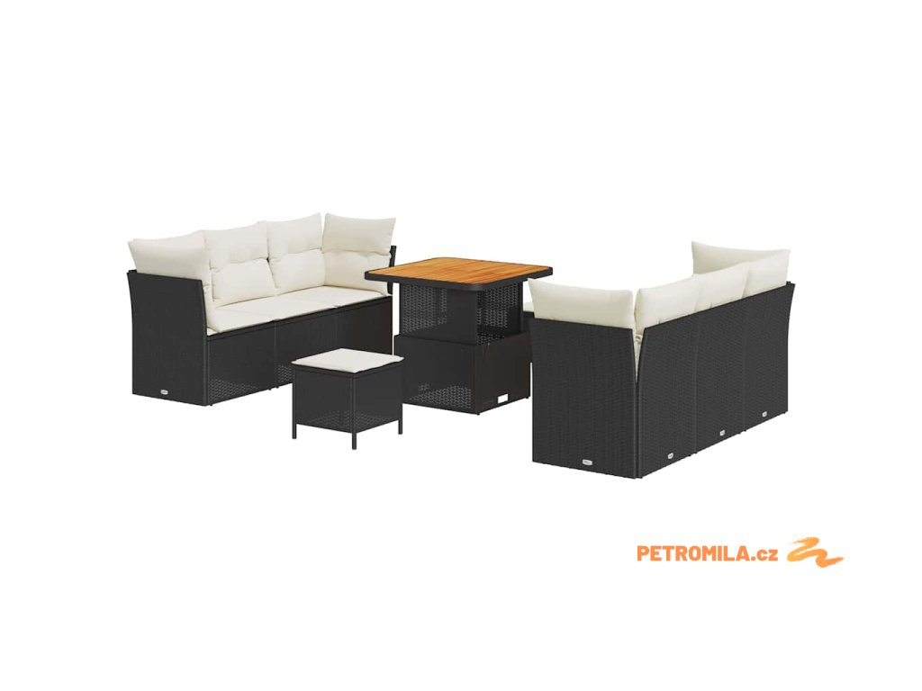Sada zahradních pohovek 9 pcs Černá a krémová polyratan