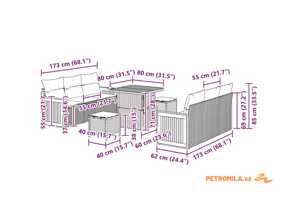 - Celkové rozměry: 80 x 80 x 71 cm (D x Š x V)