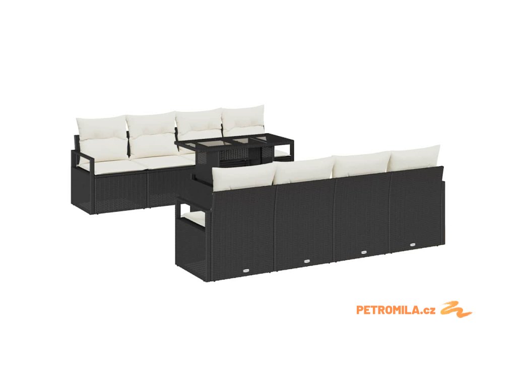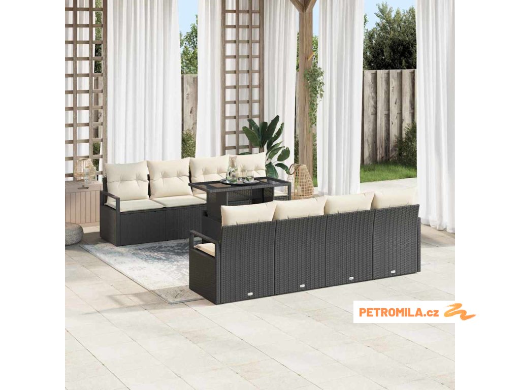 Sada zahradních pohovek 9 pcs Černá a krémová polyratan
